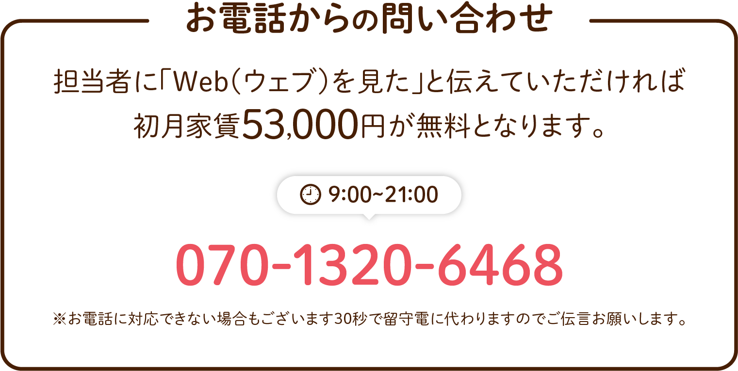 家賃、管理費のみのご負担となります。スタッフに聞いていただければ詳細をお伝えいたします。